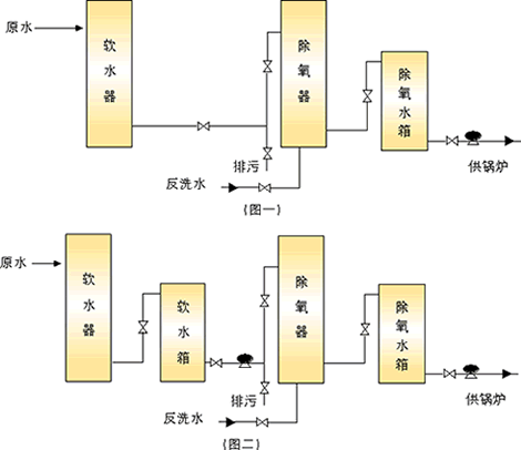 - 除氧器的反洗用水可由自來水直接供給,也可配備反洗泵,反洗用水可為自來水,軟化水,除氧水;