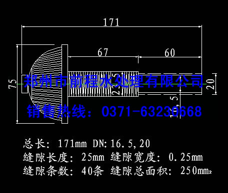| 規格型號 | 材質 | 濾管 | 總長(mm) | 縫隙寬度(mm) | 縫隙長度(mm) | 縫隙條數(條) | 縫隙面積(mm2) |