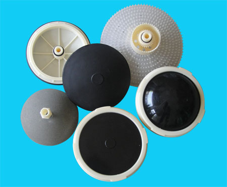 膜片式微孔曝氣器系統(tǒng)主要由曝氣器底座,上螺旋壓蓋,空氣均流板,合成橡膠膜片等部件組成,其構(gòu)件材質(zhì)均采用工程塑料,組裝時,只要將微孔橡膠膠膜片套在空氣均流板上,并置入帶有密封線的曝氣器底座內(nèi),然后用上螺旋壓蓋擰緊即可。