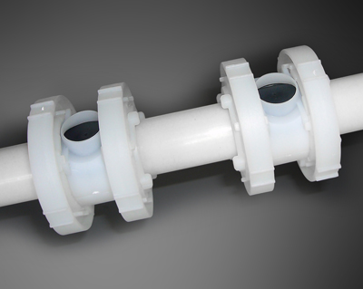 5、堵頭與ABS管相聯(lián) 、ABS管接頭與ABS管相聯(lián),均采用ABS膠膠聯(lián)并密封。膠聯(lián)固化溫度20℃左右,固化時(shí)間2日。膠接強(qiáng)度7~8Mpa。