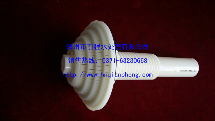 雙流速濾(水)帽ABS濾帽反沖洗濾帽包括排水帽、濾水帽兩種,均采用ABS工程塑料制成,結構合理,連接牢固,承壓強度高,縫隙不變型,使用效果好,即能防止陰陽樹脂外流,又能保證流量。適用于濾池汽水反沖洗系統和軟化水質組合式,重力壓,壓力式,回程式及離子交換器等水處理設備的過濾裝置。離子交換器、機械過濾器、無濾池等設備,能有效進行過濾和氣水反沖洗。
