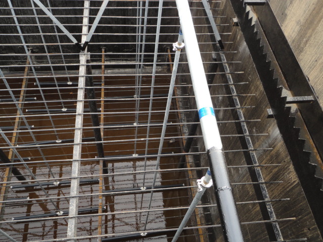 3、每根進氣分管要從池岸上的總管分布出來,并安裝一只閥門,靠池壁彎至池內水位液面處。