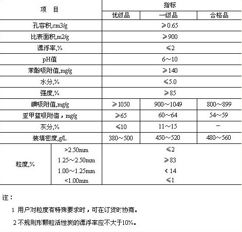 凈水活性炭技術(shù)指標(biāo):