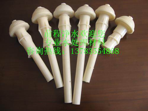 QS —2 型長柄濾頭。濾帽為半球狀體,由于濾帽縫隙呈弧形,因而配氣、配水均勻。濾頭可直接置于濾料層中、不需設(shè)置承托層,可減少濾池的深度,節(jié)省造價。